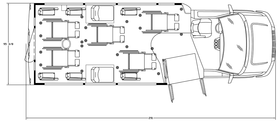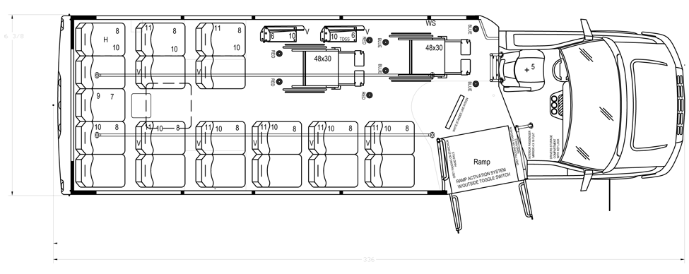 The ARBOC Spirit of Mobility provides a single, non-discriminatory patented angled and accessible entranceway. Passengers no longer need to contend with steps in the most accessible cutaway bus in the industry. Every passenger, including wheelchair riders and power scooters can experience what Equal Access for Everyone really means! The Mobility is built on a conventional GM cutaway with all passengers entering through the same 39-inch wide door opening. The interior offers theater seating that provides better viewing for all riders. The Spirit of Mobility low floor bus offers a full air-ride suspension with a beneficial kneeling feature allowing for a 1:6 ramp slope and an entrance of less than 5" from the curb without deploying the ramp. If speed of operation, ride quality, passenger dignity and safety are important, then the Spirit of Mobility is the bus for you!