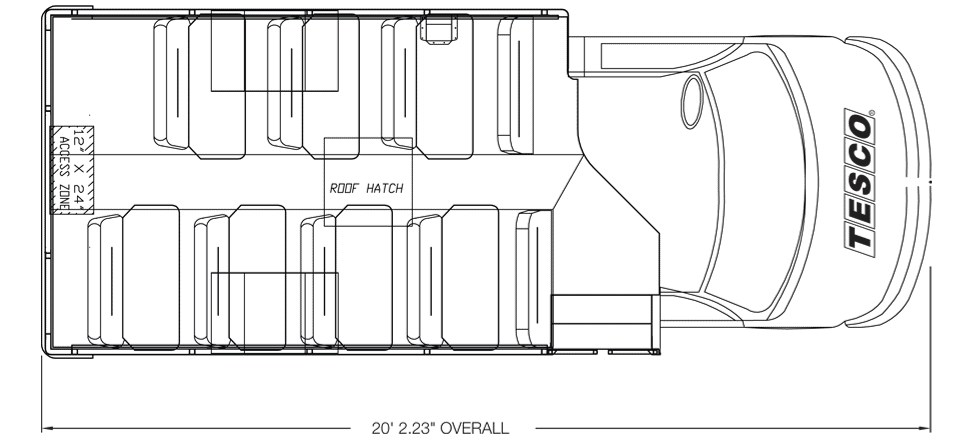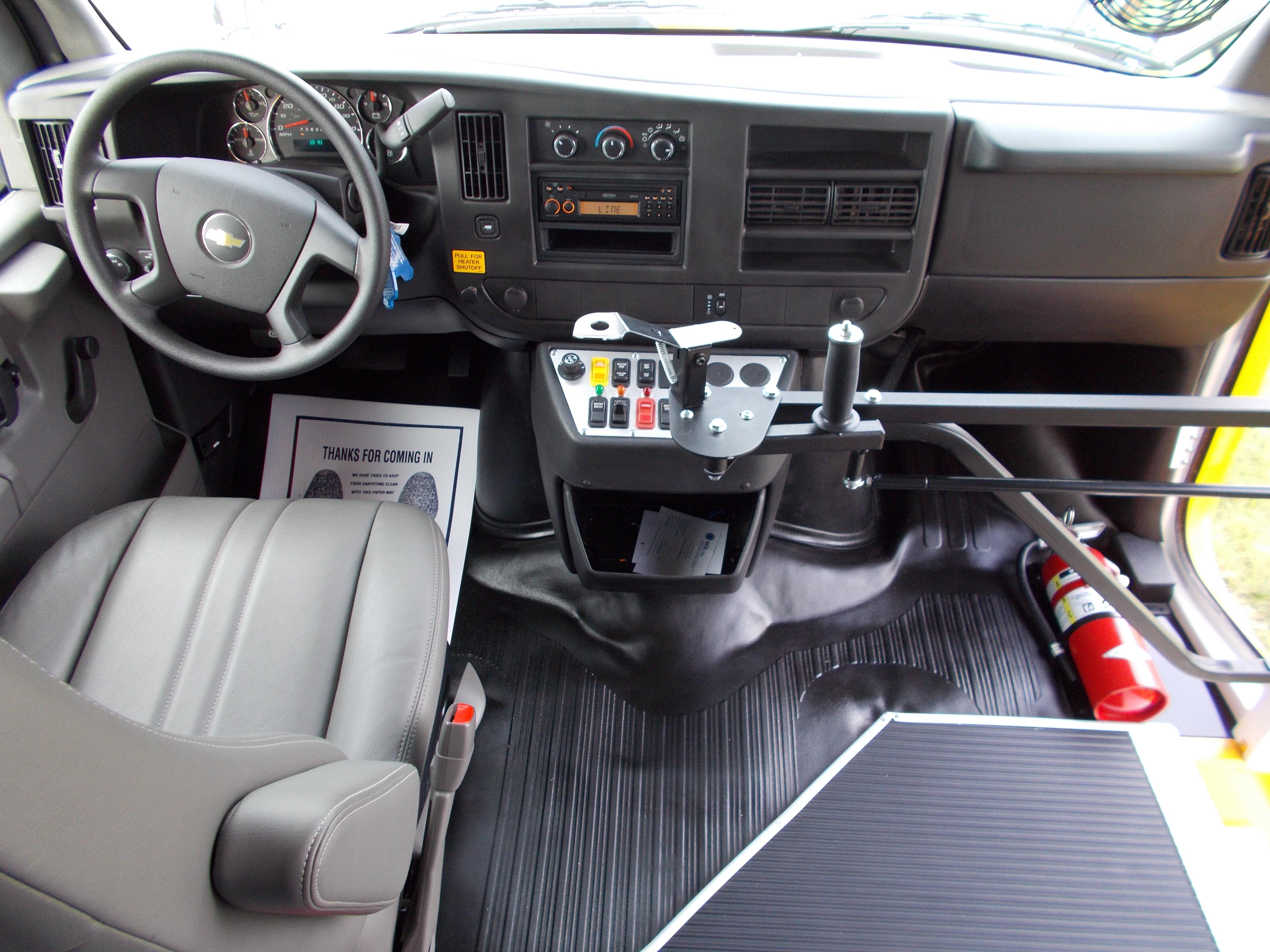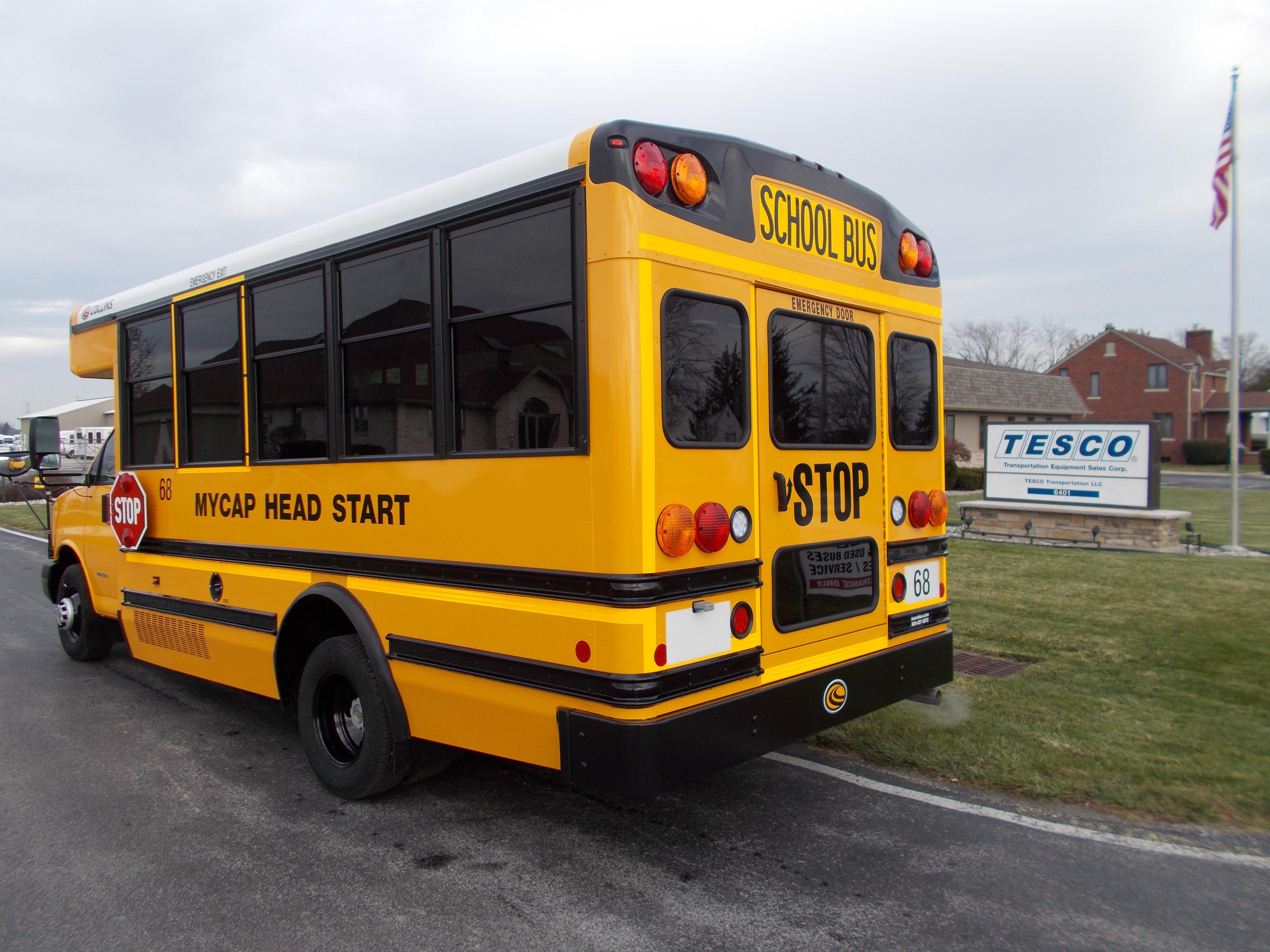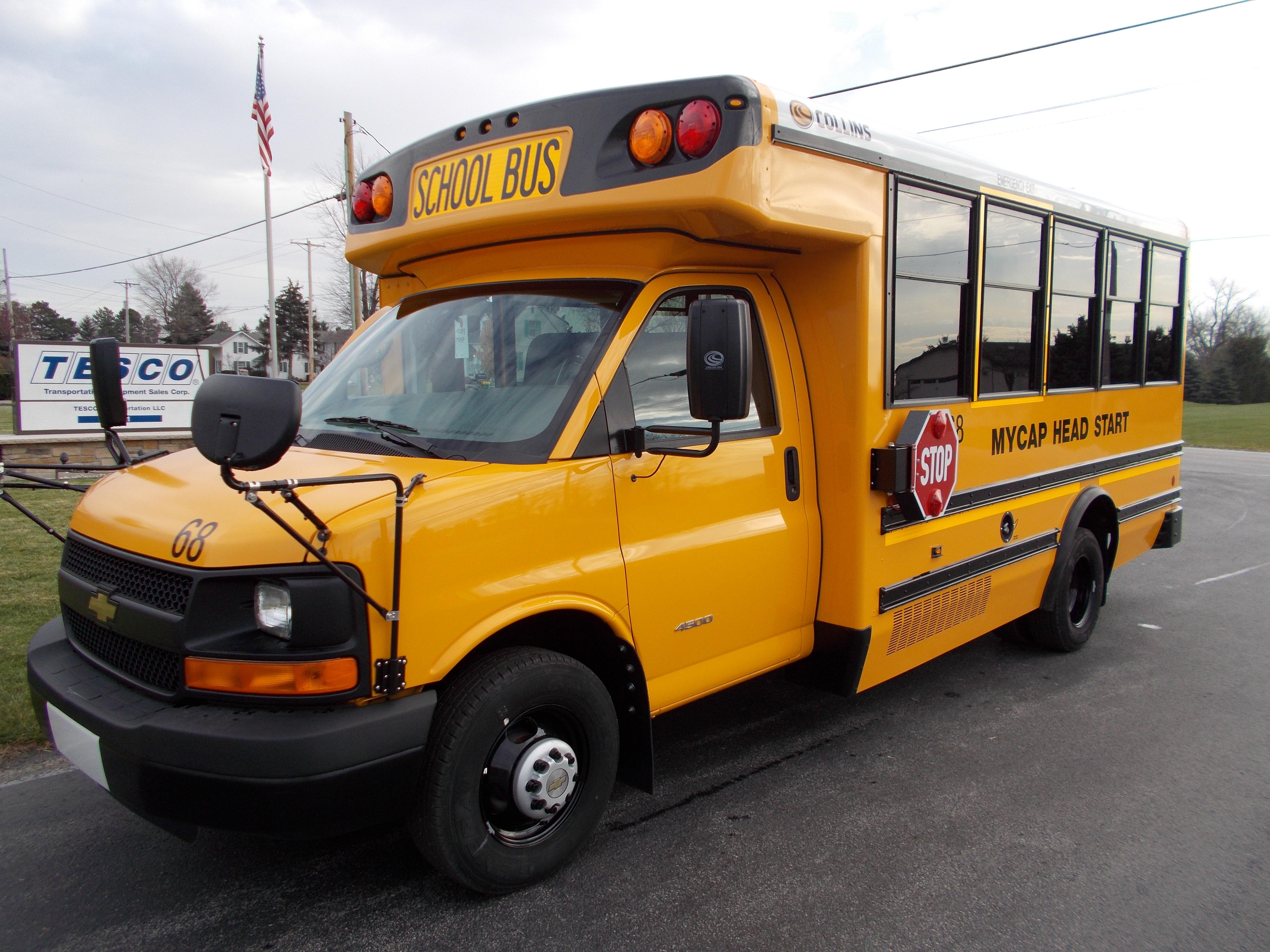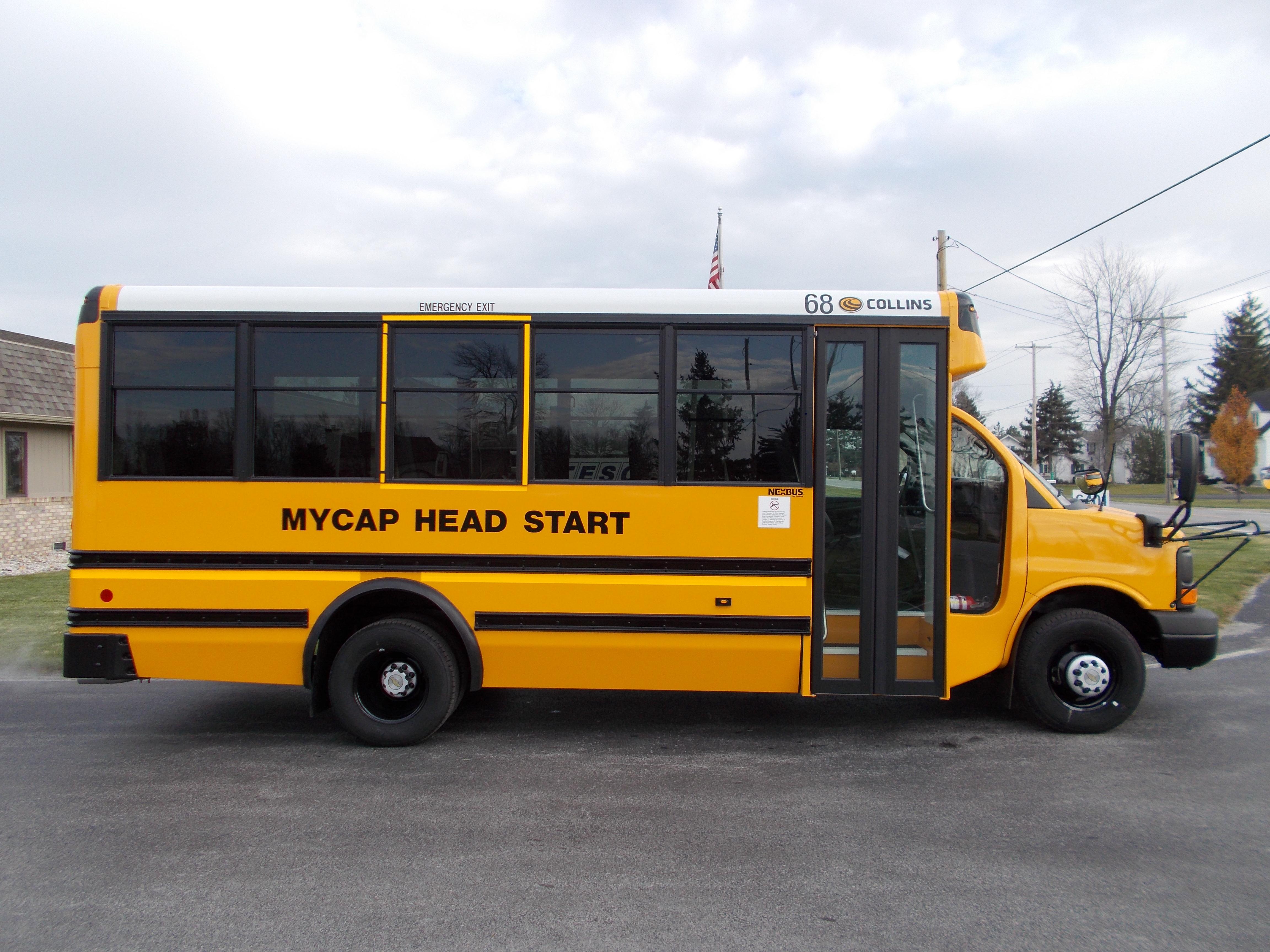The NEXBUS Type A school bus by Collins is available on a Chevrolet, GMC, or Ford chassis with a gas, diesel, CNG, propane, or hybrid engine. With so many options, the NEXBUS can be built to your specifications. This bus has features unlike its alternatives, including larger passenger windows, external storage compartments, top of the line electrical panel, and SafeGuard XChange Seating.