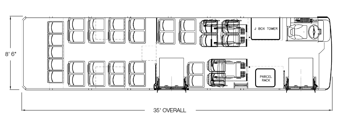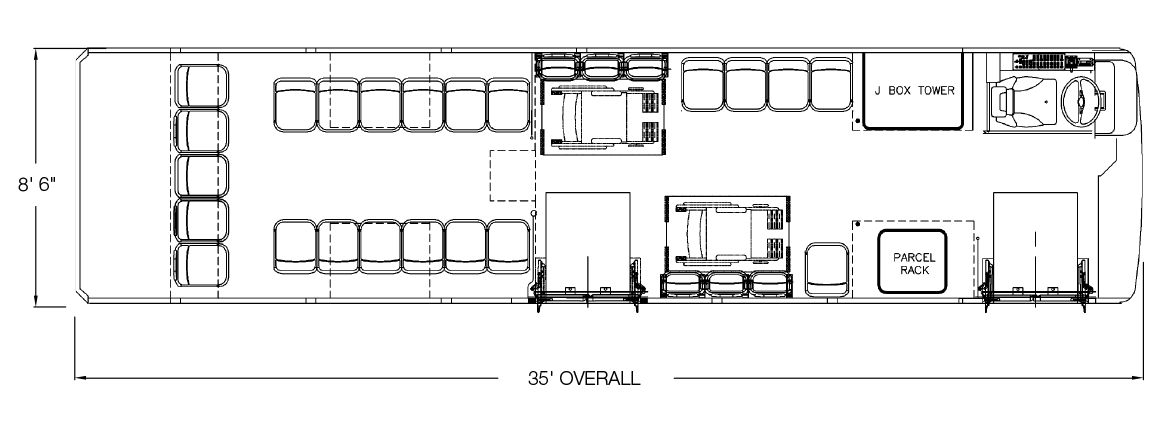 The Axess is perfectly designed to meet the most demanding ADA applications, with available front and/or center door ADA compliant wheelchair ramps. For special route applications, even doors with wheelchair ramps mounted on both sides of the bus of available. Extraordinary adaptability is standard on the Axess.