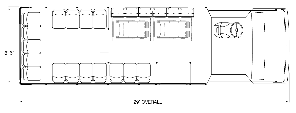 The Passport was designed for superior floor plan flexibility with accommodations for up to three ADA-compliant wheelchair positions. Realizing that no two customer applications are the same, the Passport offers a wide array of transit/shuttle options. As with all ElDorado National low-floor buses, the Passport offers unsurpassed fuel flexibility - diesel, gasoline, CNG or propane. The ElDorado National Passport gives you easy access to anywhere you want to go!