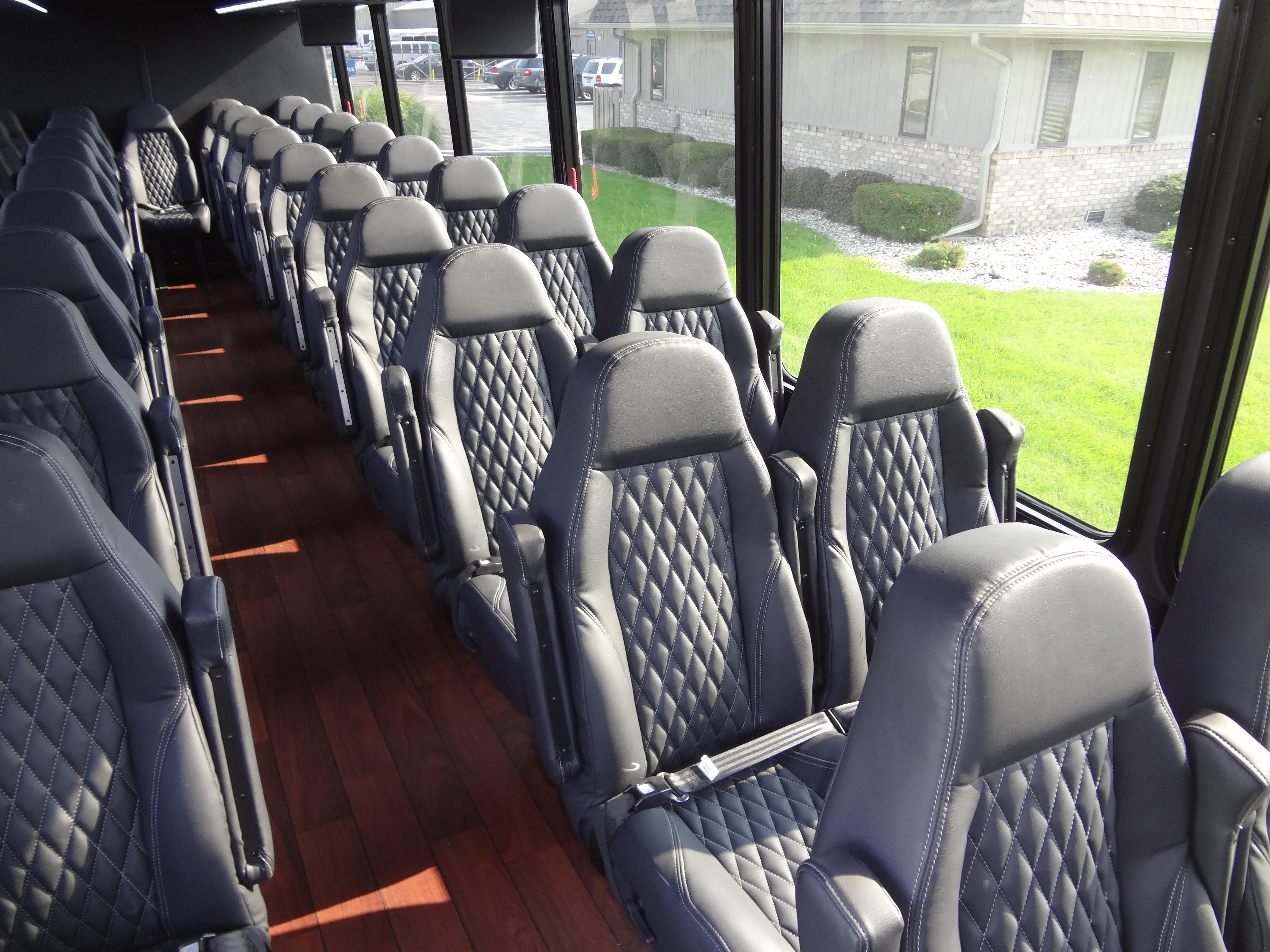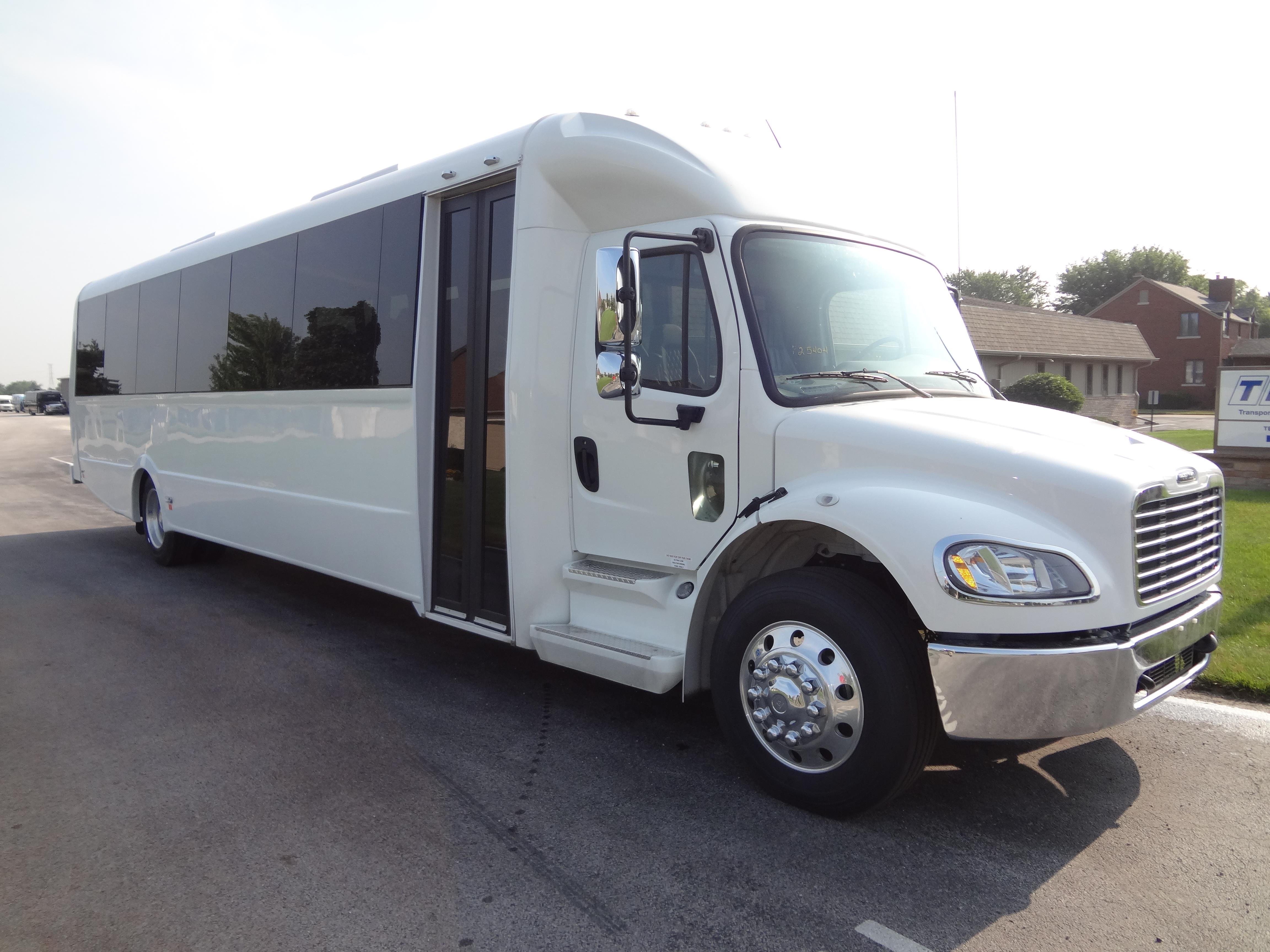 The Premier Shuttle Bus from Federal Coach is your large group transportation solution. Built on a heavy-duty Freightliner chassis, the Premier stands for durability without sacrificing luxury. The Premier offers available amenities like LCD flat screens, painted skirts, back-up camera and alarm and under belly storage. You will appreciate standard features like interior LED lighting and large touring windows. With an all-fiberglass body and one-piece fiberglass roof, the Premier sets the standard in large bus luxury. The Premier offers seating from 39 passengers with two wheelchairs plus driver up to 44 passengers plus driver. Available in 36 or 40 foot models, the Premier also gives you options like rear and overhead luggage for longer excursions. With the Premier Shuttle Bus from Federal Coach, your passengers will experience style and comfort like never before.