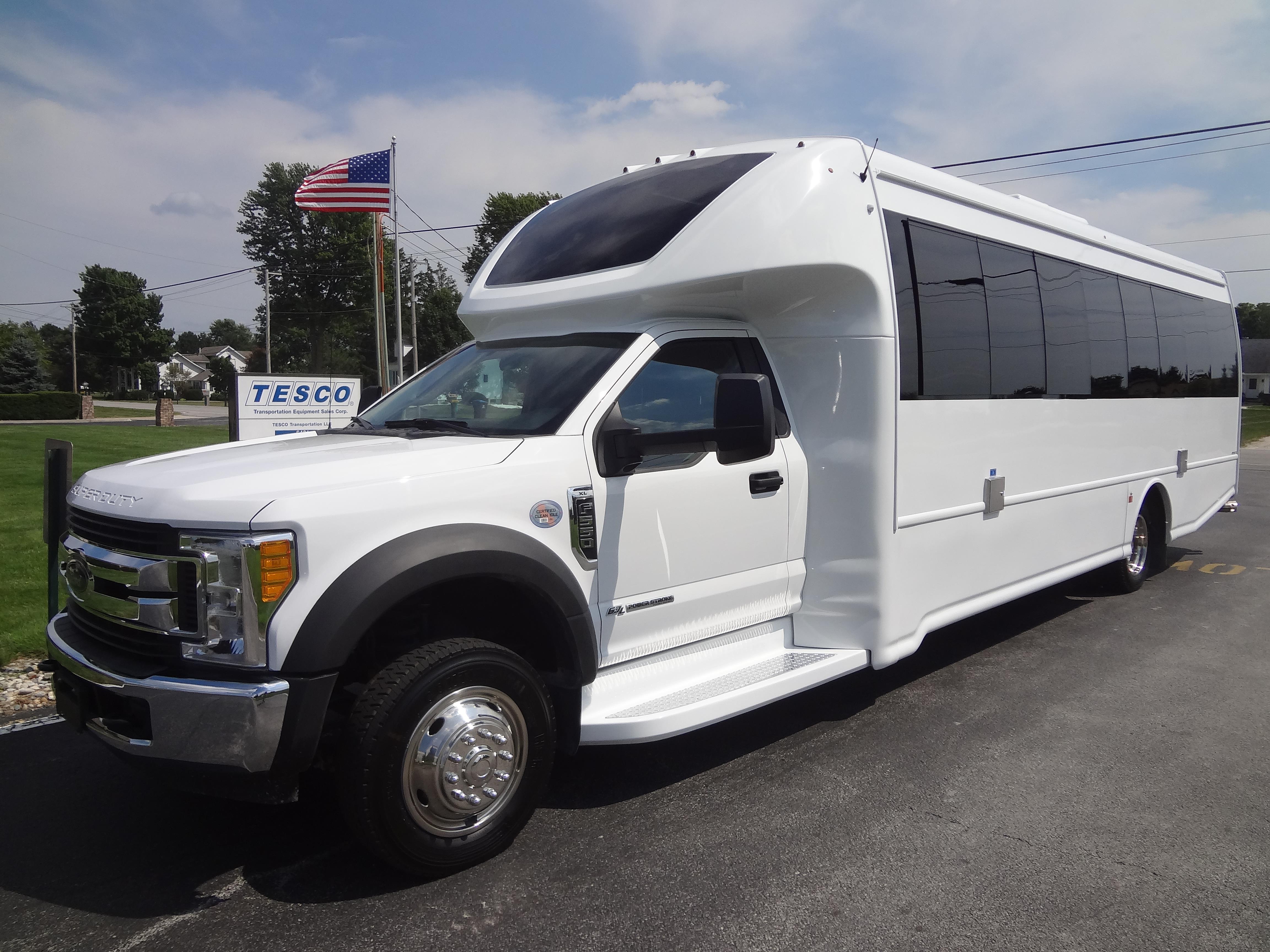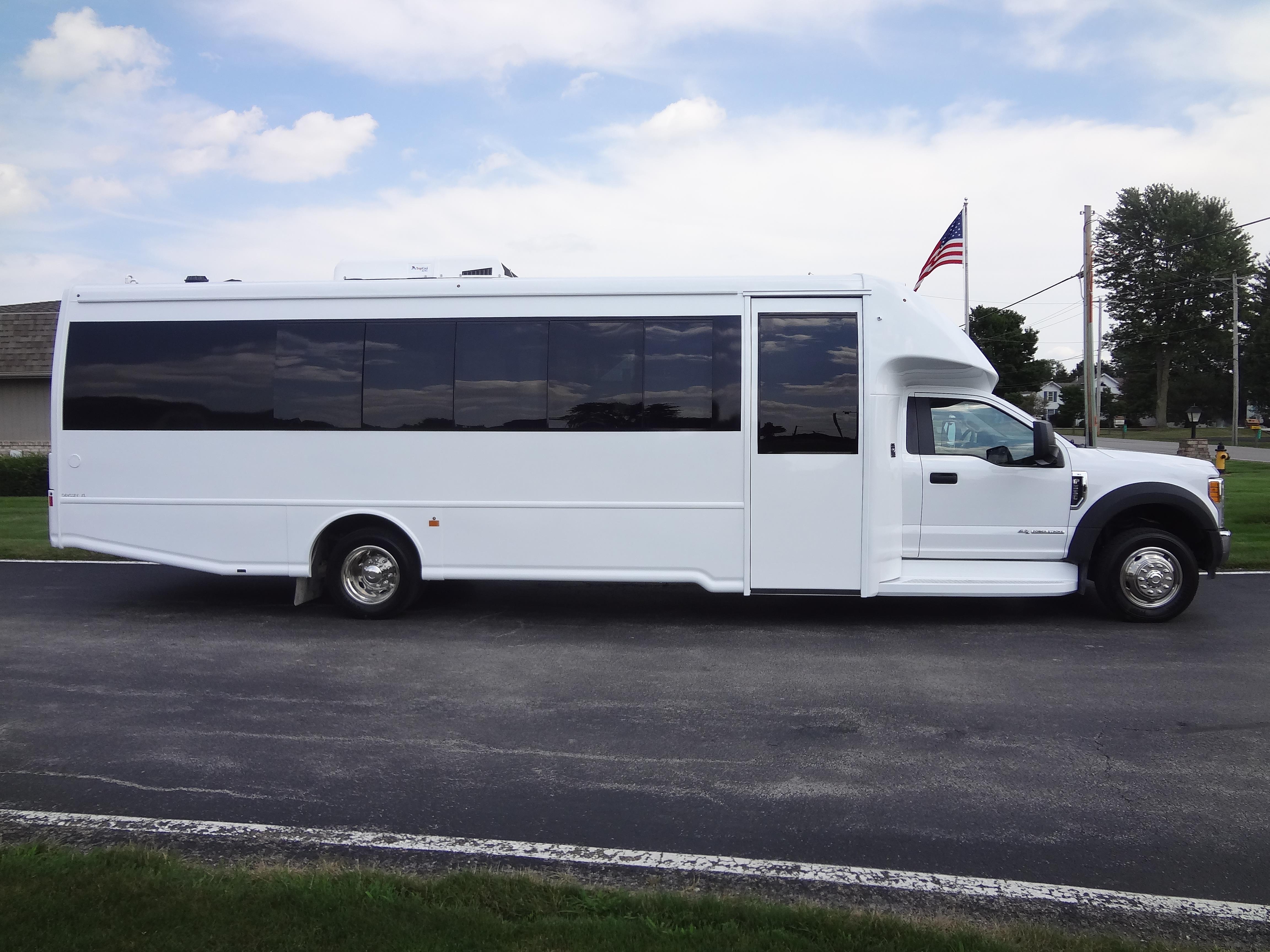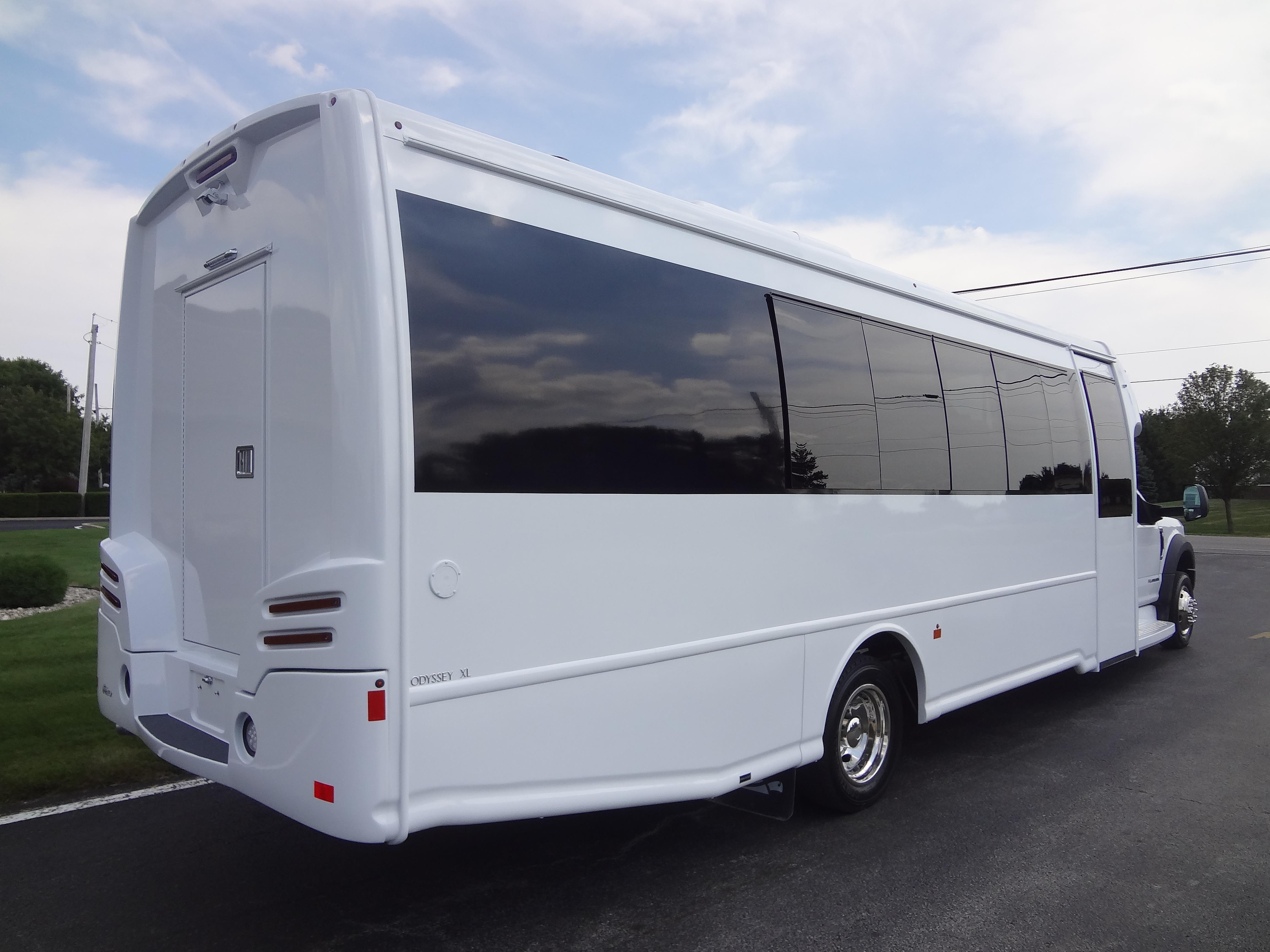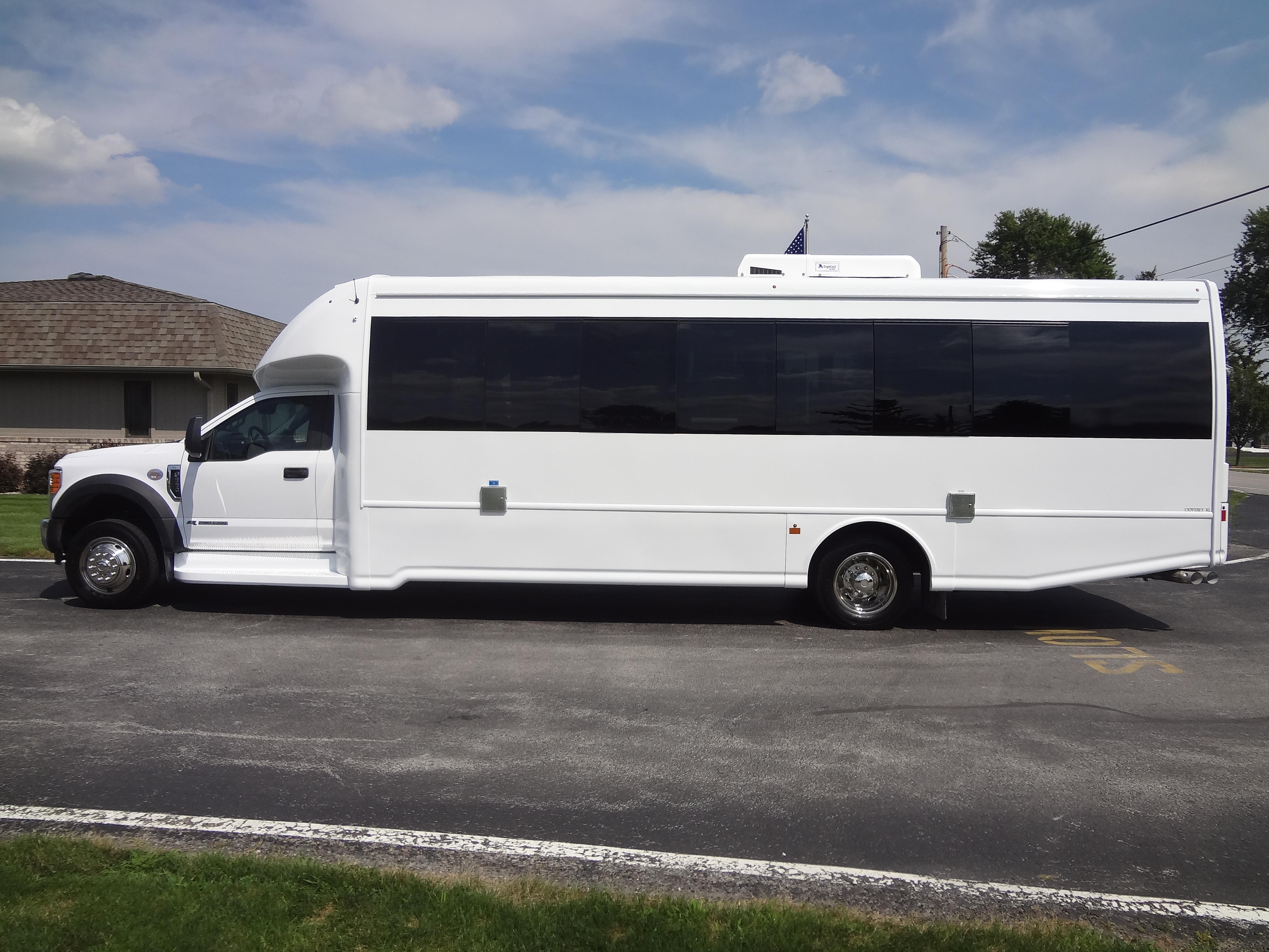 The Odyssey XL F550 shuttle bus and motorcoach series of buses that provide up to 37 passenger capacity are available on the Freightliner chassis. Bus road stability, passenger comfort, dependability, quality and safety are a main concern for the owners of an Odyssey XL F550. More passenger capacity for church buses, college buses, city and county transportation authorities, assisted living buses, cross-country touring companies, excursion companies and many more transportation customers can be found selecting the Odyssey XL F550. DESIGNED TO MEET OR EXCEED APPLICABLE FMVSS STANDARDS and FORD QVM