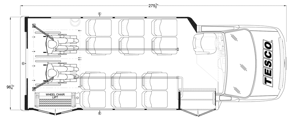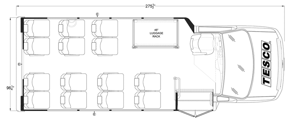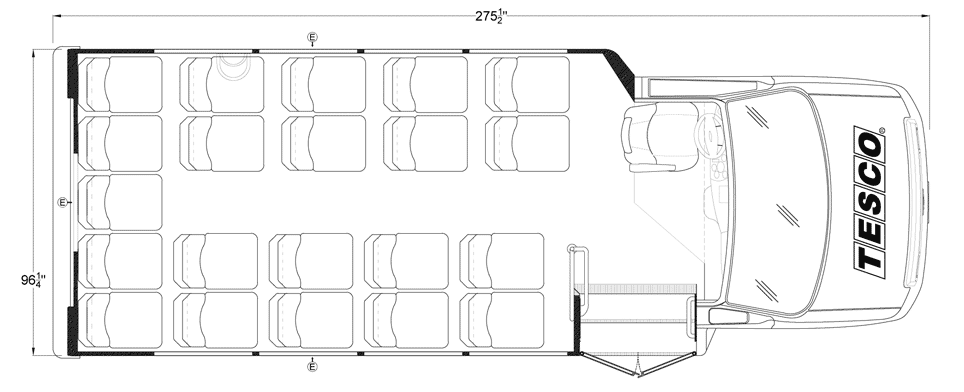 The Terra Transit shuttle bus is an economical compliment to Turtle Top's mid-size fleet. This abridged version of the Odyssey also offers seating for up to 25 passengers (plus driver) and maintains the same safety standards that Turtle Top is known for. Your riders will find it easy to enter and exit with ample headroom and aisle passage. With a variety of floor plans, you can meet your needs for storage, seating preferences, and wheelchair accessibility. A full roll cage, quality construction, and 2-year warranty make this the most affordable and practical choice for safe, dependable transportation. Count on a Turtle to keep you moving forward! DESIGNED TO MEET OR EXCEED APPLICABLE FMVSS STANDARDS and FORD QVM