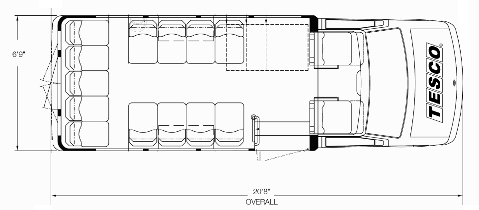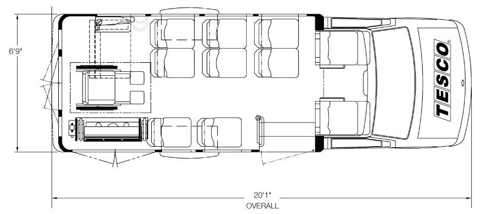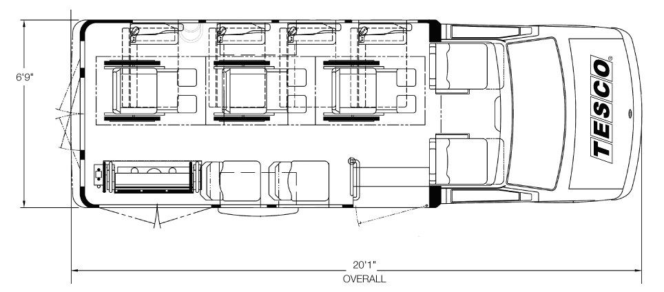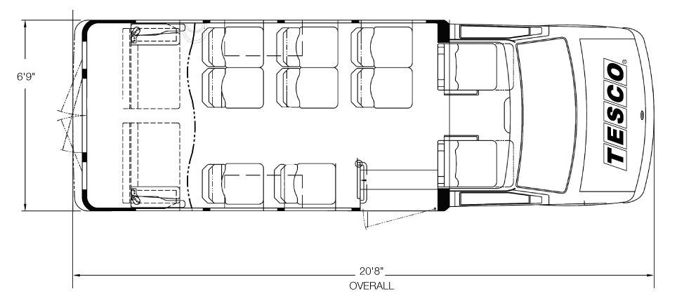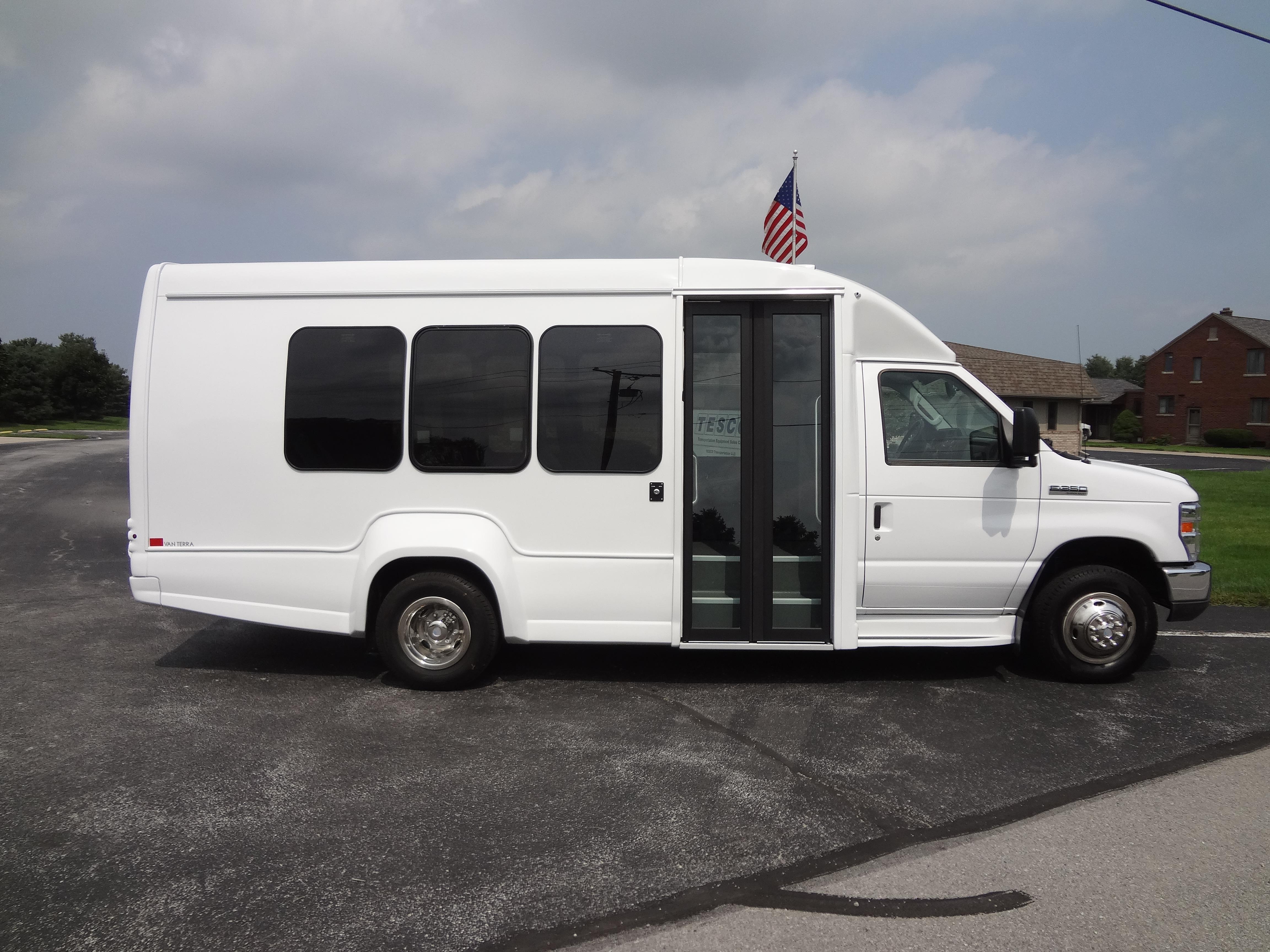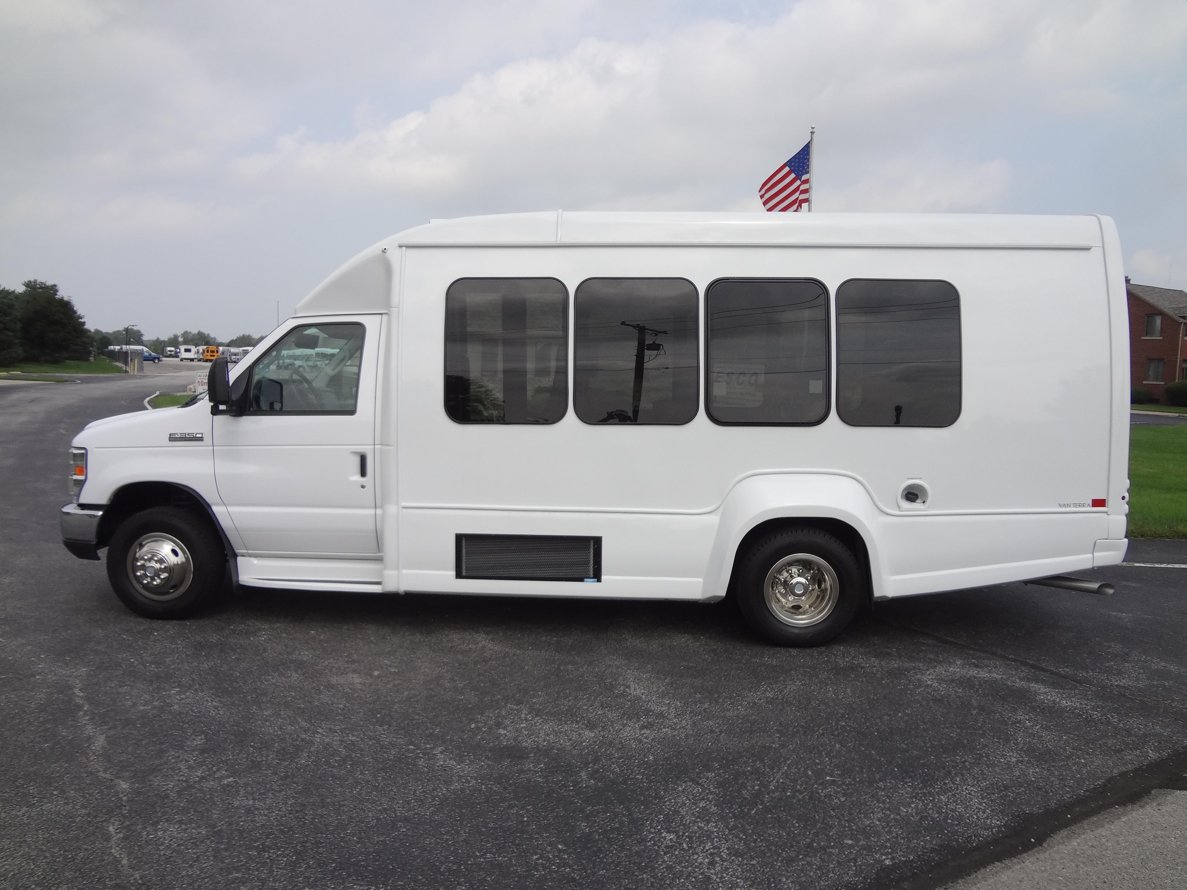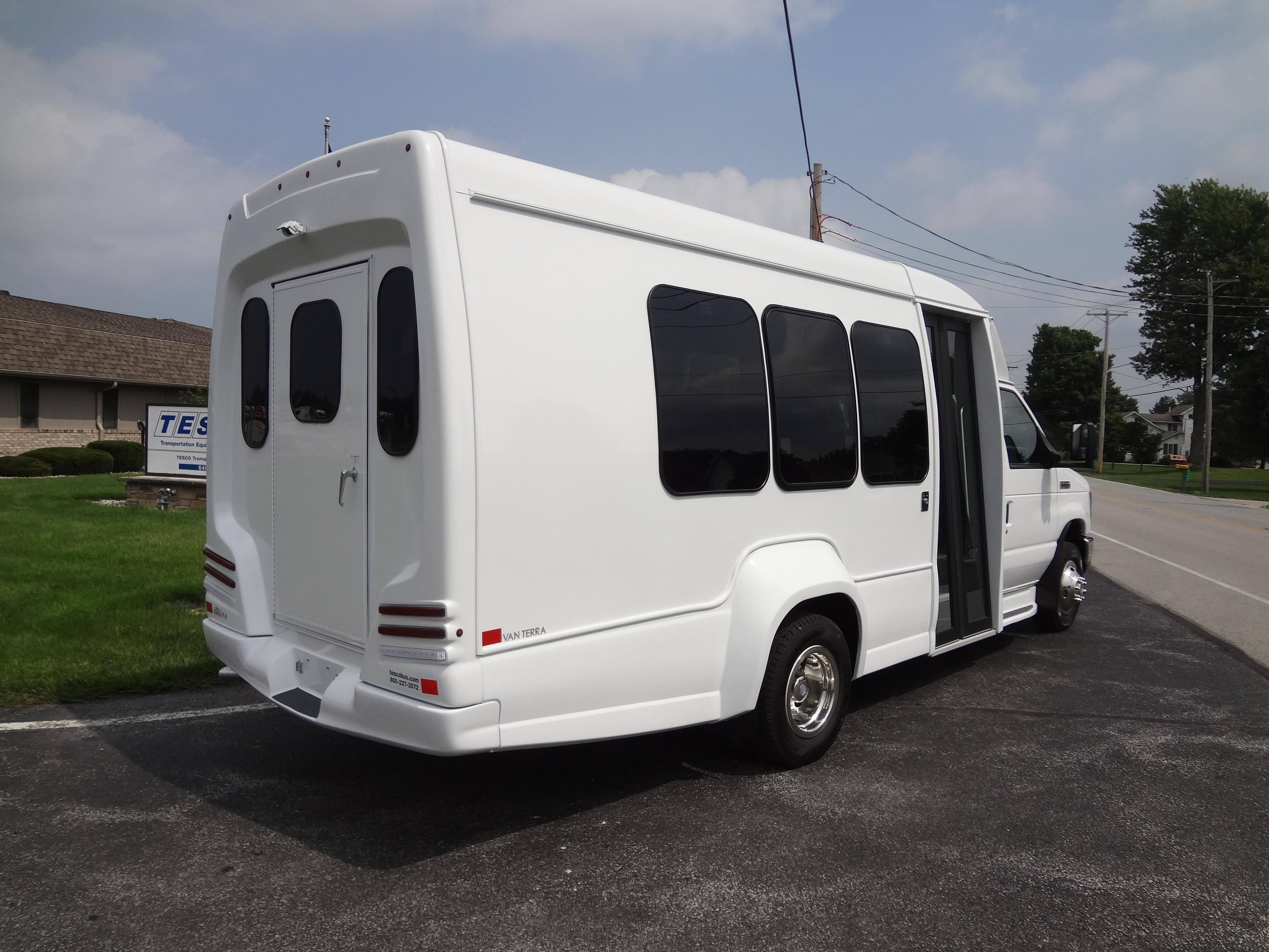 This model includes a true five-sided structure that sets the standard in industry safety. The aerodynamic exterior and comfortable interior feature an enormous passenger view window and sophisticated lighting packages. Occupant counts from 1 to 18 are welcome with ample seating making the new VanTerra truly the head of its class.