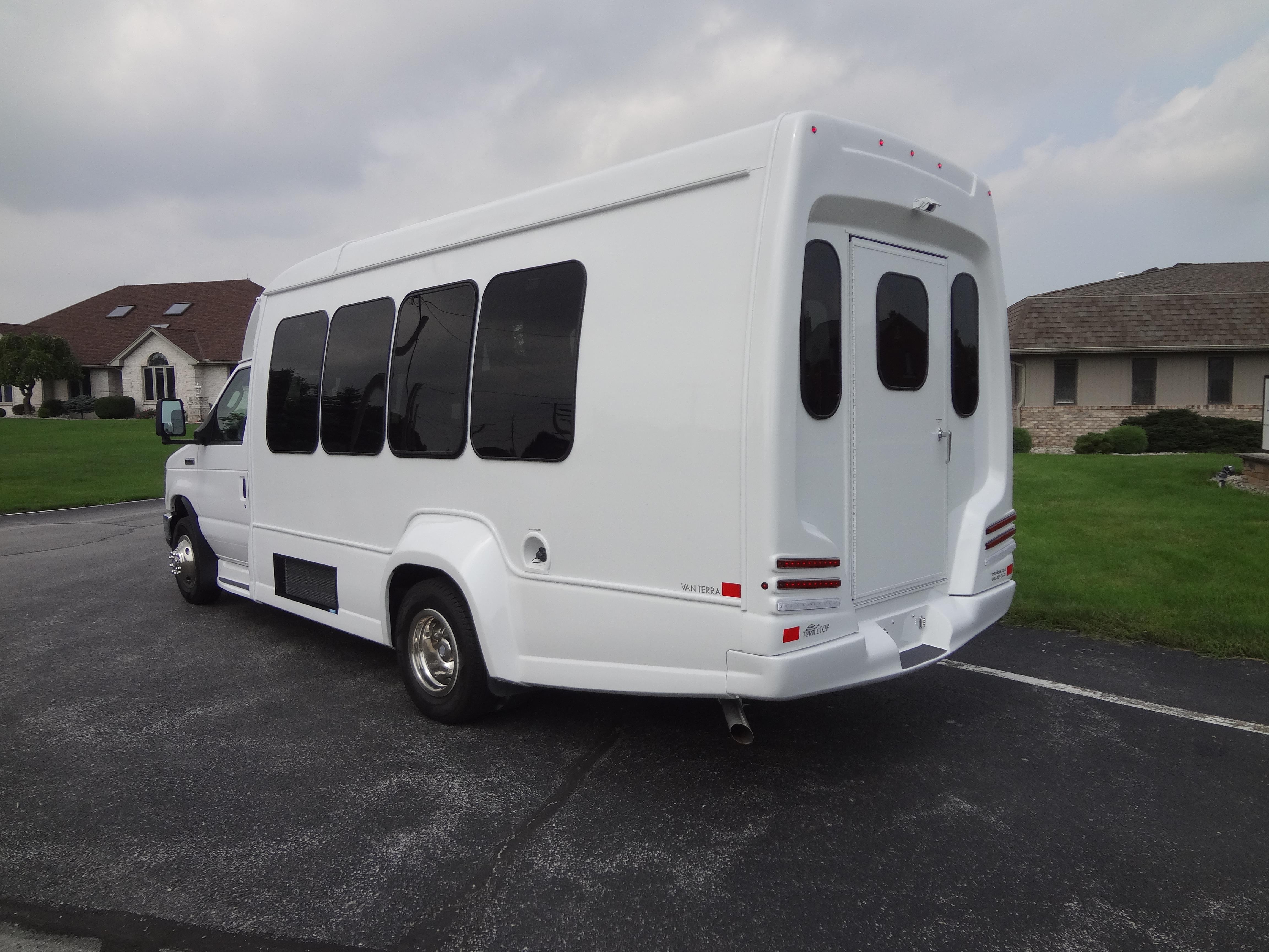 The new VanTerra enhances everything you love about our previous models with the technology and innovation of modern day construction. The Turtle Top VanTerra is constructed on the Ford E-350 cutaway power train with either single or dual rear wheels. Multiple floor lengths give flexibility for a variety of paratransit and luxury options.