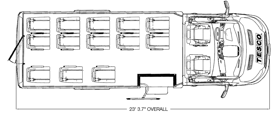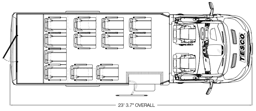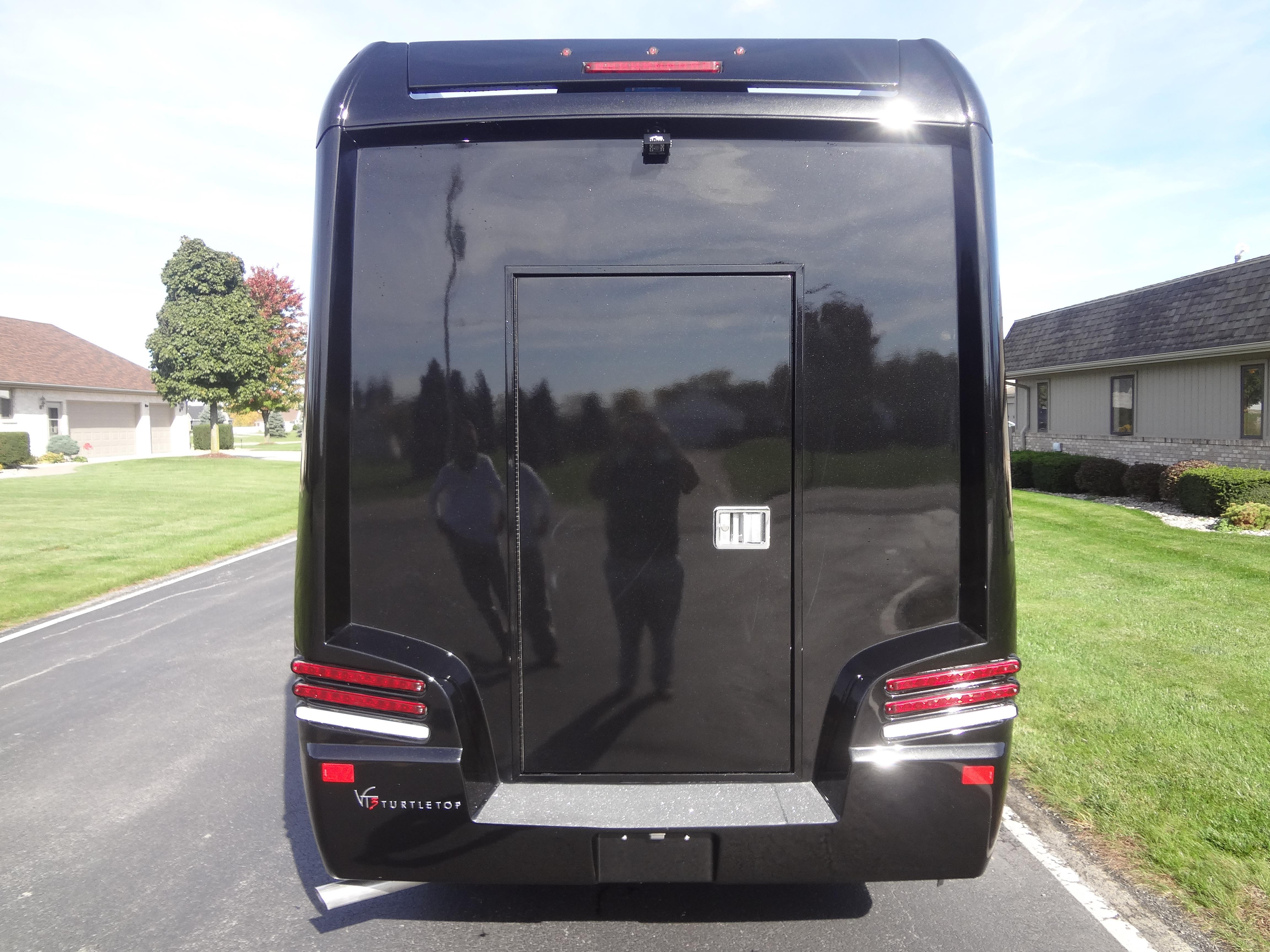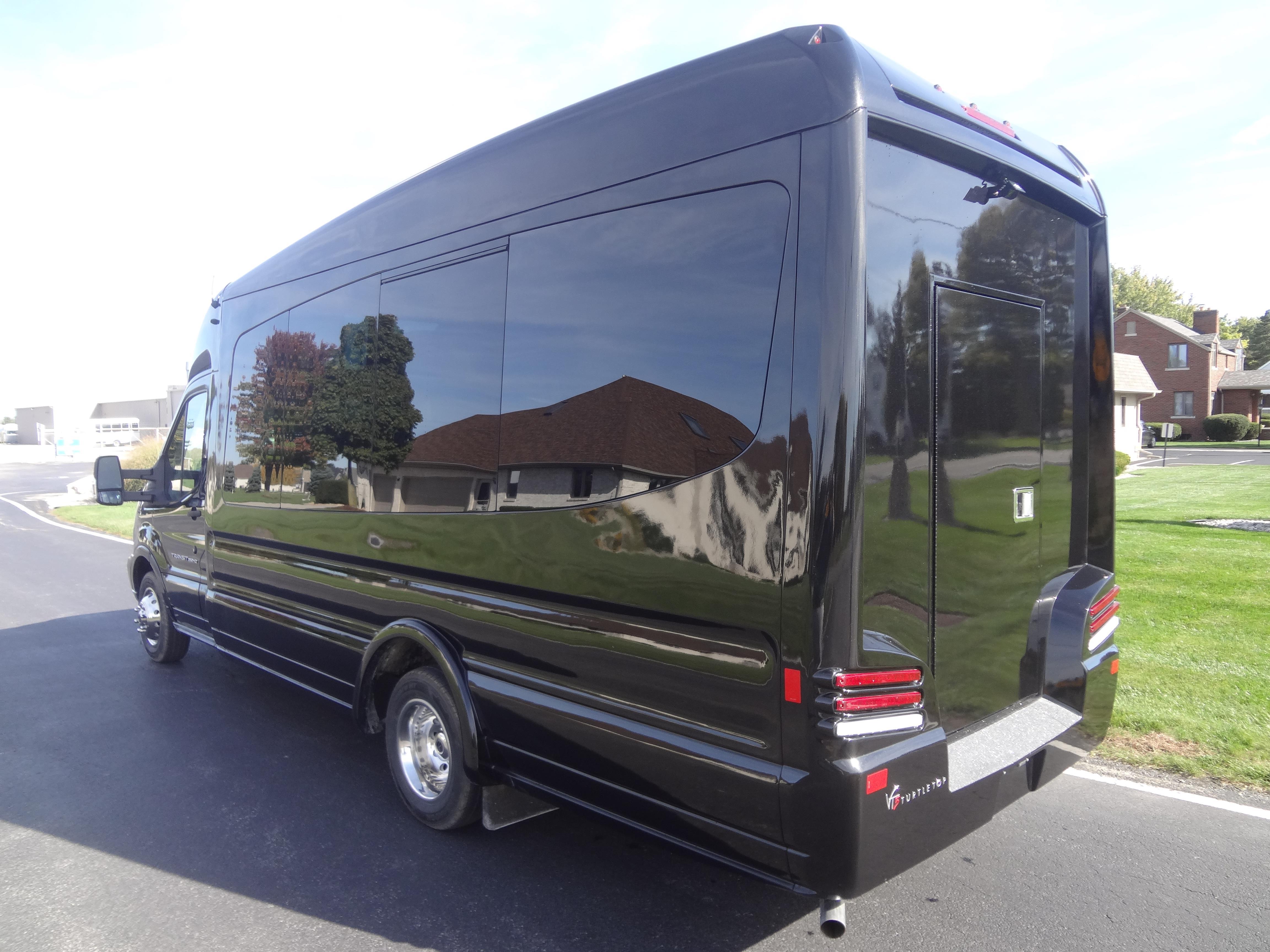 Introducing the new VT3 from Turtle Top, the next generation in mid-sized bus design! Groundbreaking technology and construction methods allows for a 17 passenger capacity while still getting up to 18 miles per gallon. The VT3 is built on the new Ford Transit cutaway and offers a wider interior width than the standard Ford Transit or Mercedes Sprinter vans. Along with an automotive interior finish, the VT3 is a quiet ride, with interior noise levels similar to BMWs and other luxury sedans. As the only mid-sized bus available with a diesel engine option, the VT3 is perfect for your small shuttle bus and executive coach needs. DESIGNED TO MEET OR EXCEED APPLICABLE FMVSS STANDARDS and FORD QVM